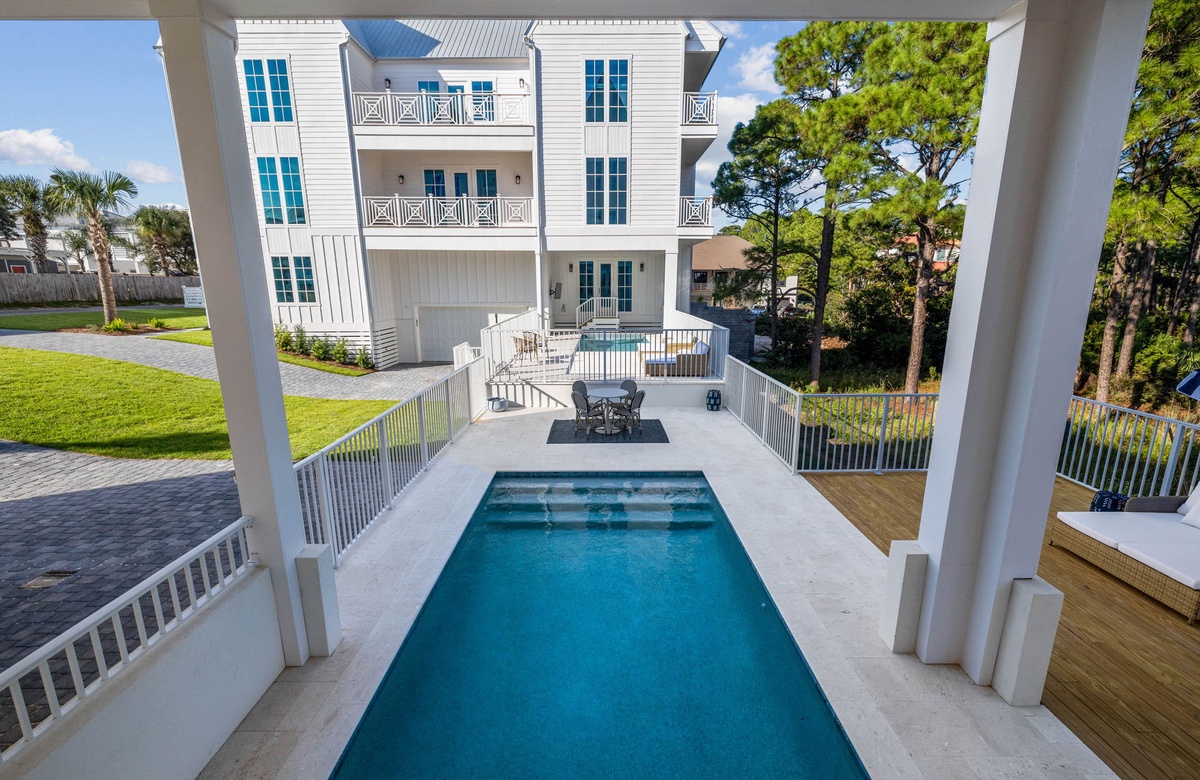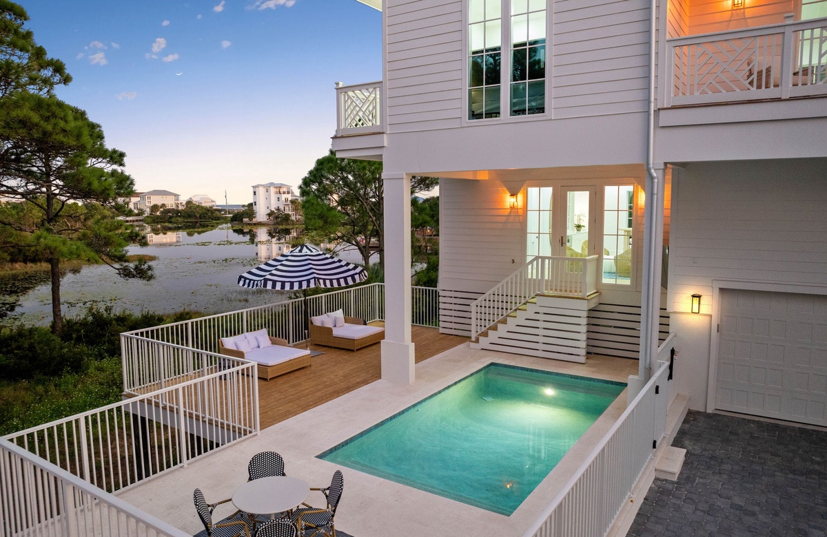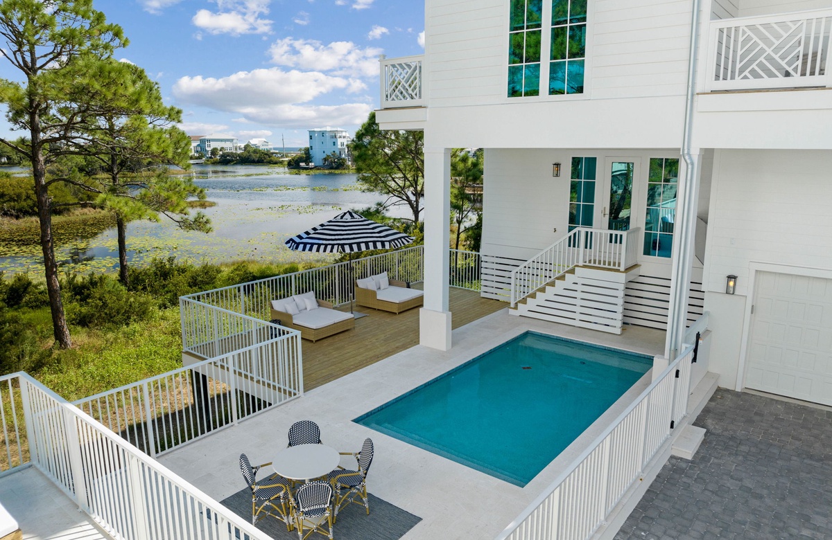On Allen Lake just off 30A in Dune Allen, Florida, "62 Blue View" combines fun for the whole family with luxurious accents and conveniences, comfortably sleeping 23 guests in 6 bedrooms and 7.5 bathrooms. This incredible, luxurious property will be the perfect oasis for your family and friends! Whether you want to enjoy the nearby public beach access, the private pool, or the endless summer views, you won't miss the opportunity to make this place your home.