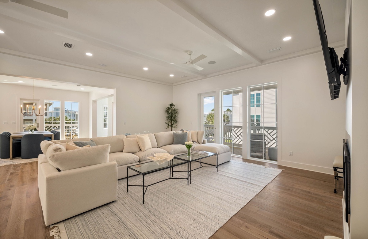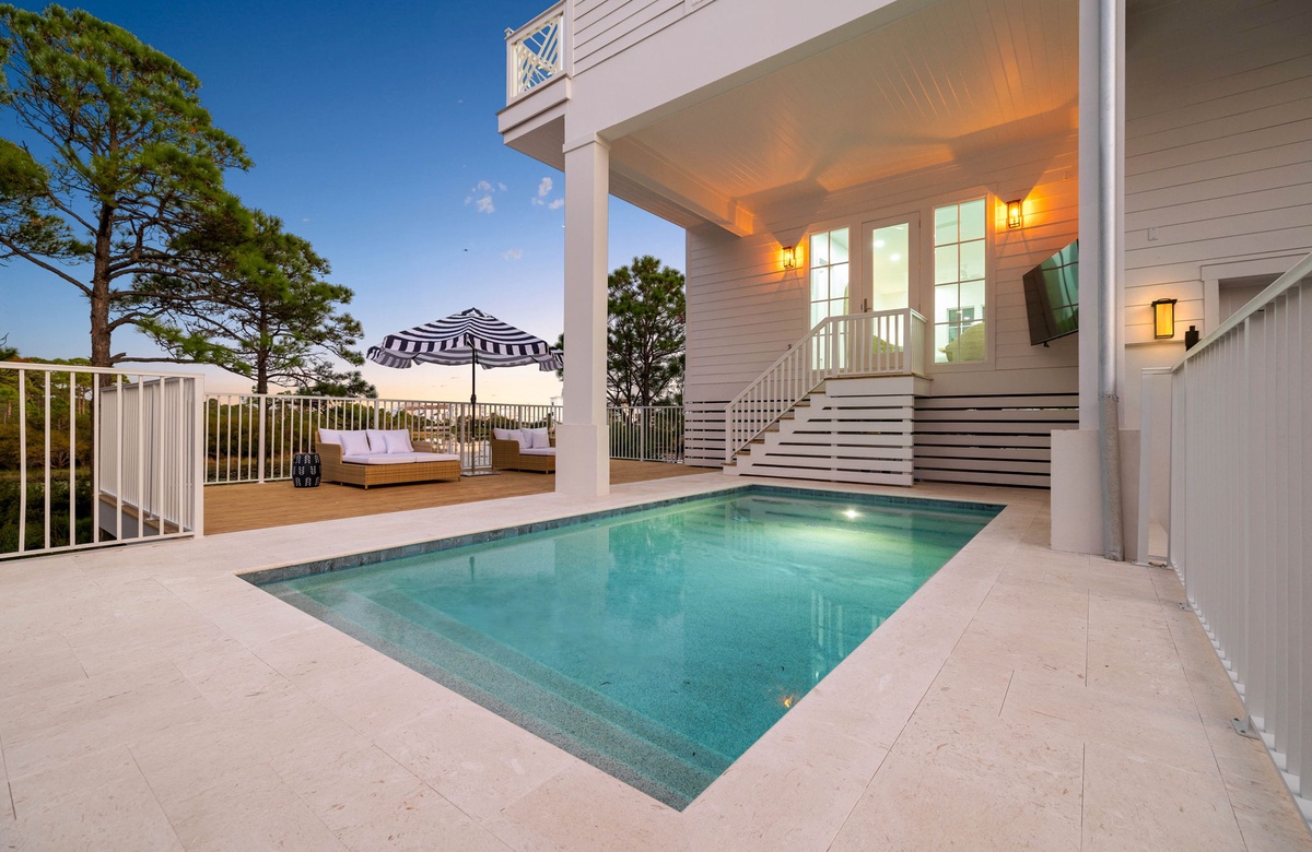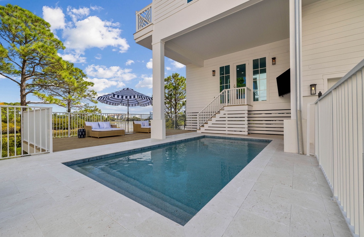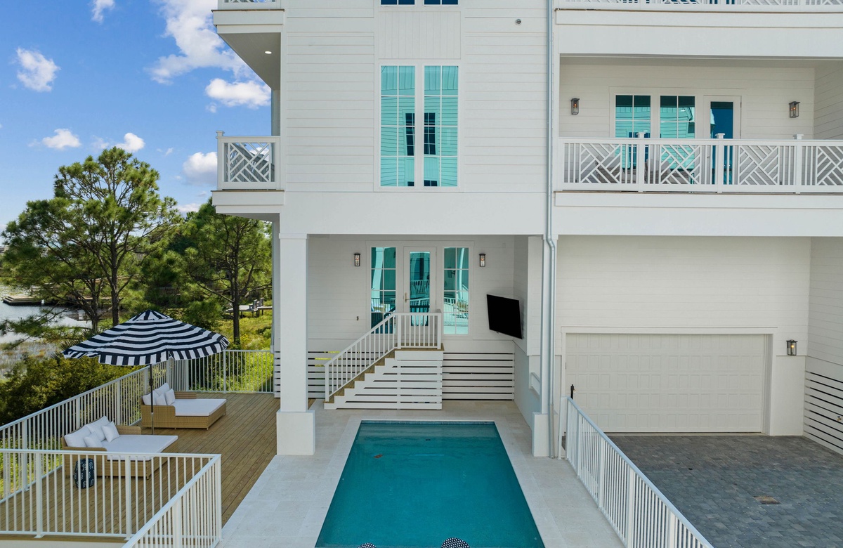 On Allen Lake just off 30A in Dune Allen, Florida, "62 Blue View" combines fun for the whole family with luxurious accents and conveniences, comfortably sleeping 23 guests in 6 bedrooms and 7.5 bathrooms. This incredible, luxurious property will be the perfect oasis for your family and friends! Whether you want to enjoy the nearby public beach access, the private pool, or the endless summer views, you won't miss the opportunity to make this place your home.