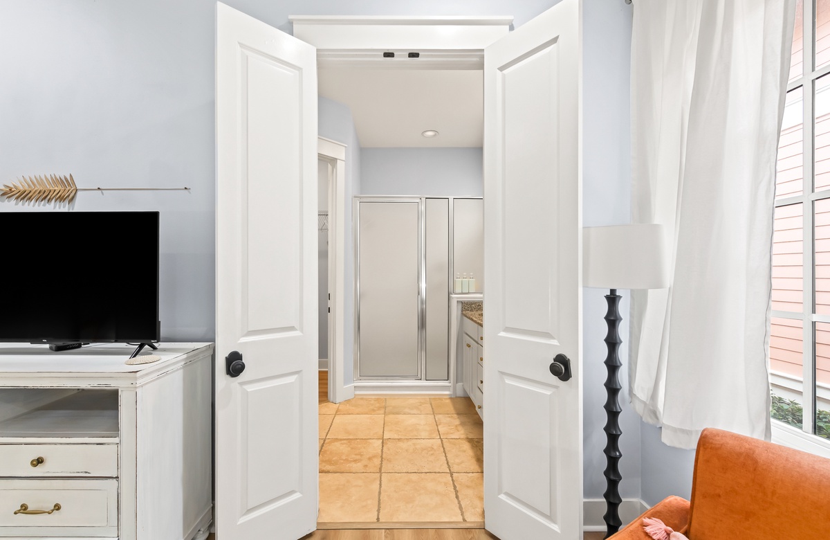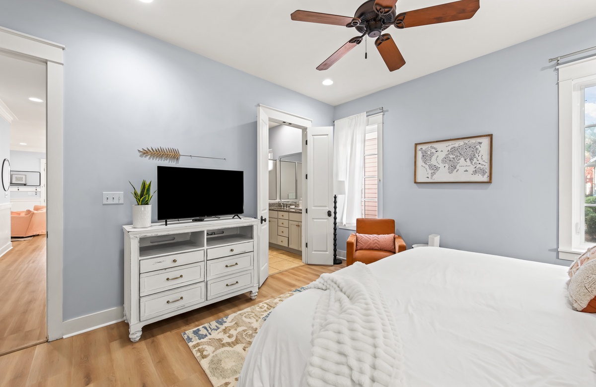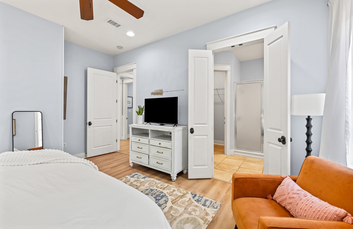 - Master Bedroom, King Bed, Private Attached Bath (Sleeps 2)