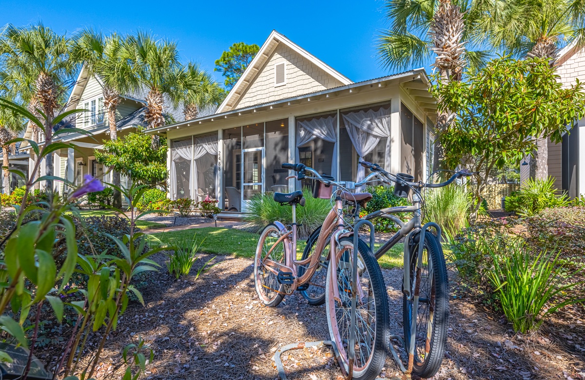 “Creative Cottage” is a three-bedroom, two-bathroom private home in the Bungalo community of the luxurious Sandestin Golf and Beach Resort. With the heated community pool and a small putting green just steps from the screened front porch, “Creative Cottage” boasts everything needed for a beach vacation. The included new six-seater golf cart allows for convenient access to everything in Sandestin, the beach, the pool, dining, shopping, entertainment, grocery store and more!