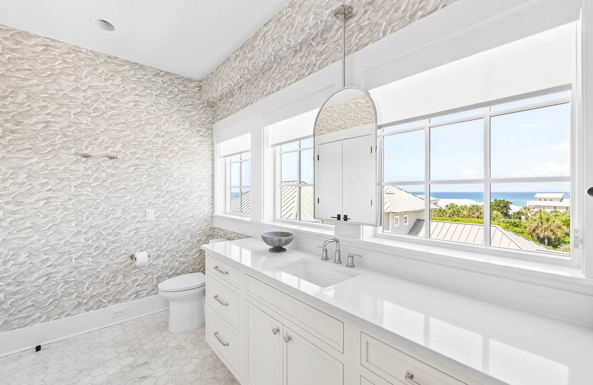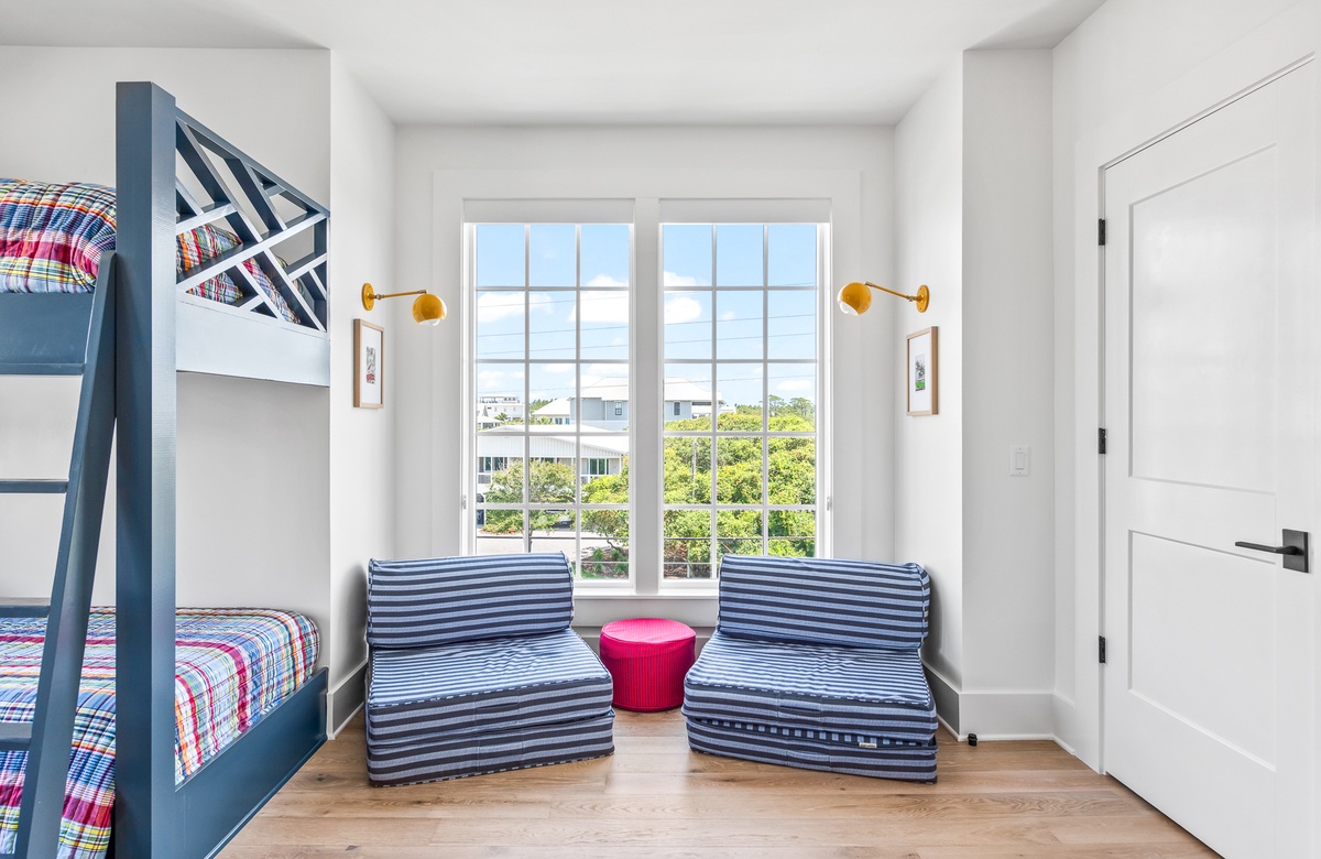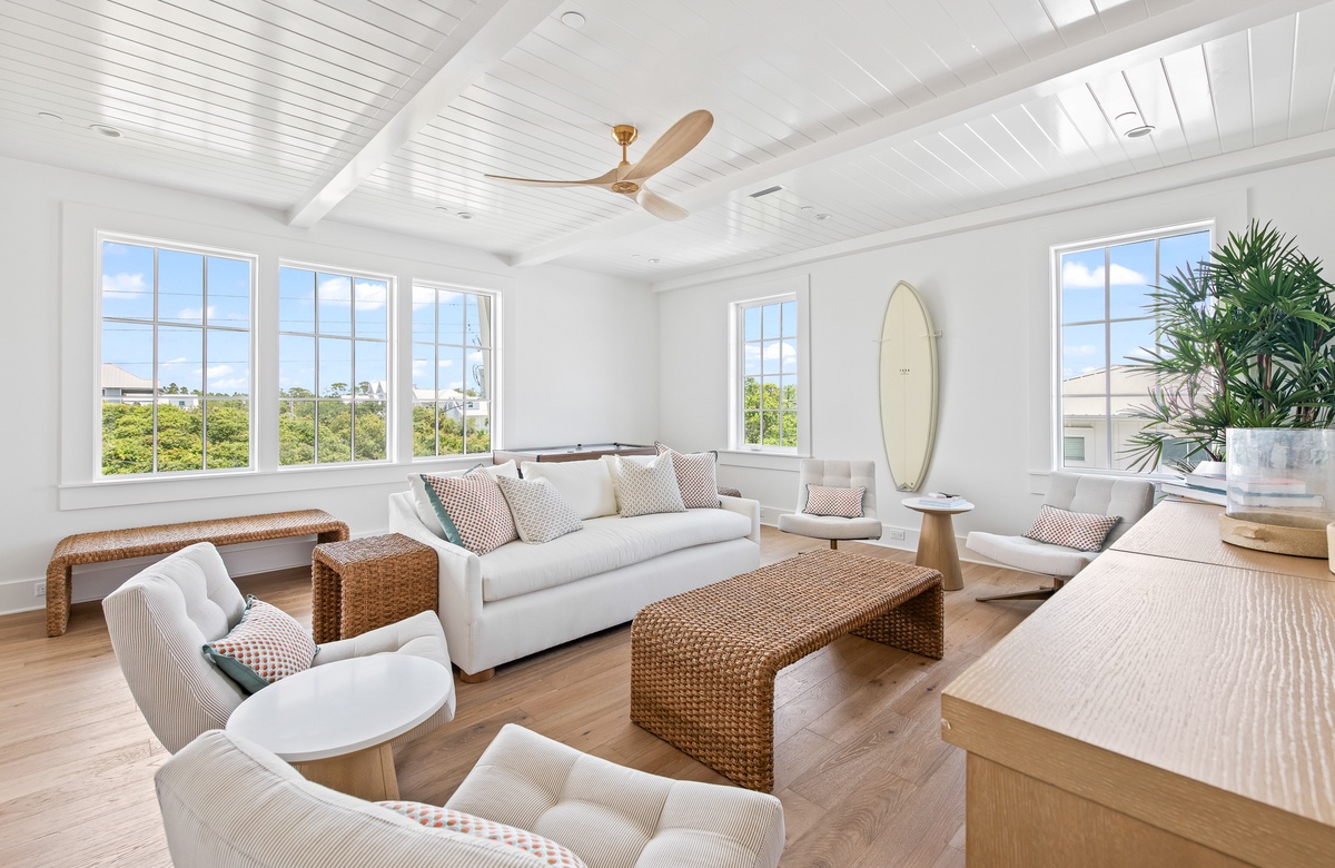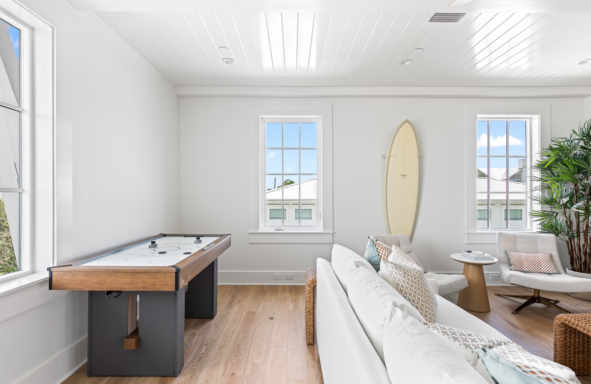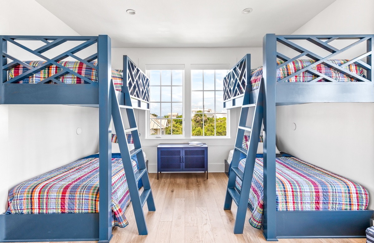On 30A in Inlet Beach, Florida, "Getaway on Green" combines fun for the whole family with luxurious accents and conveniences, comfortably sleeping 26 guests in 9 bedrooms and 7 bathrooms. Enjoy the serene quietness this property offers with a short walk to world-famous 30A beach towns or private white sandy beaches. This is a brand-new beach house that is ready to spoil guests!