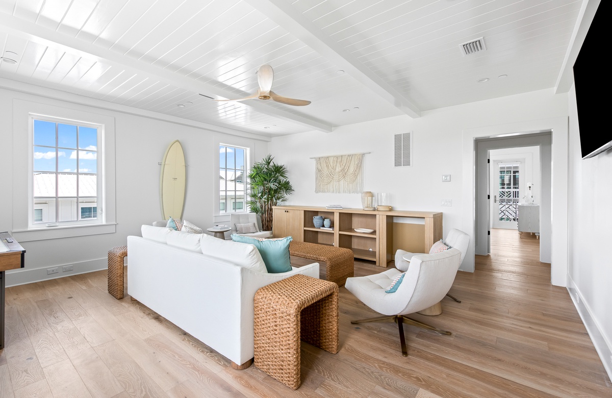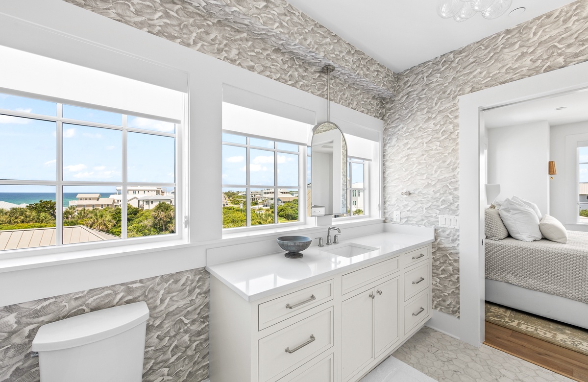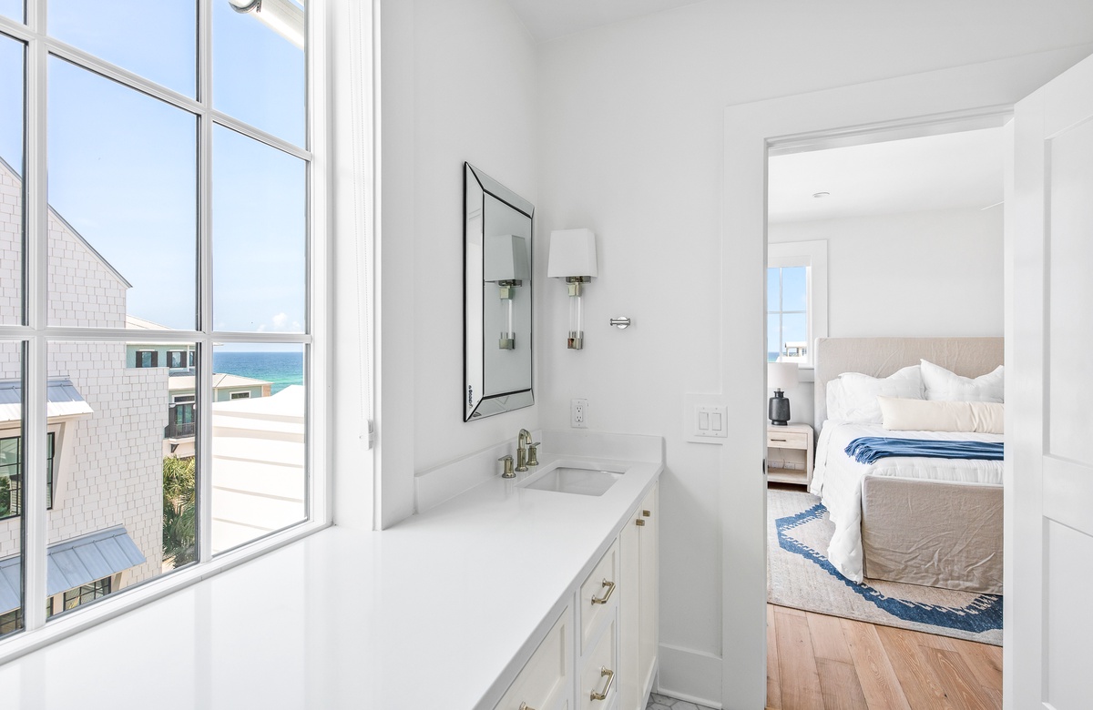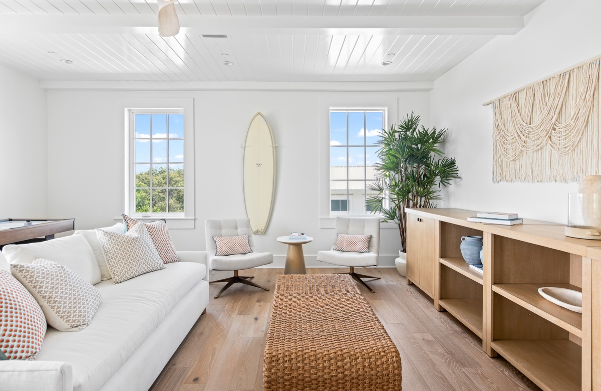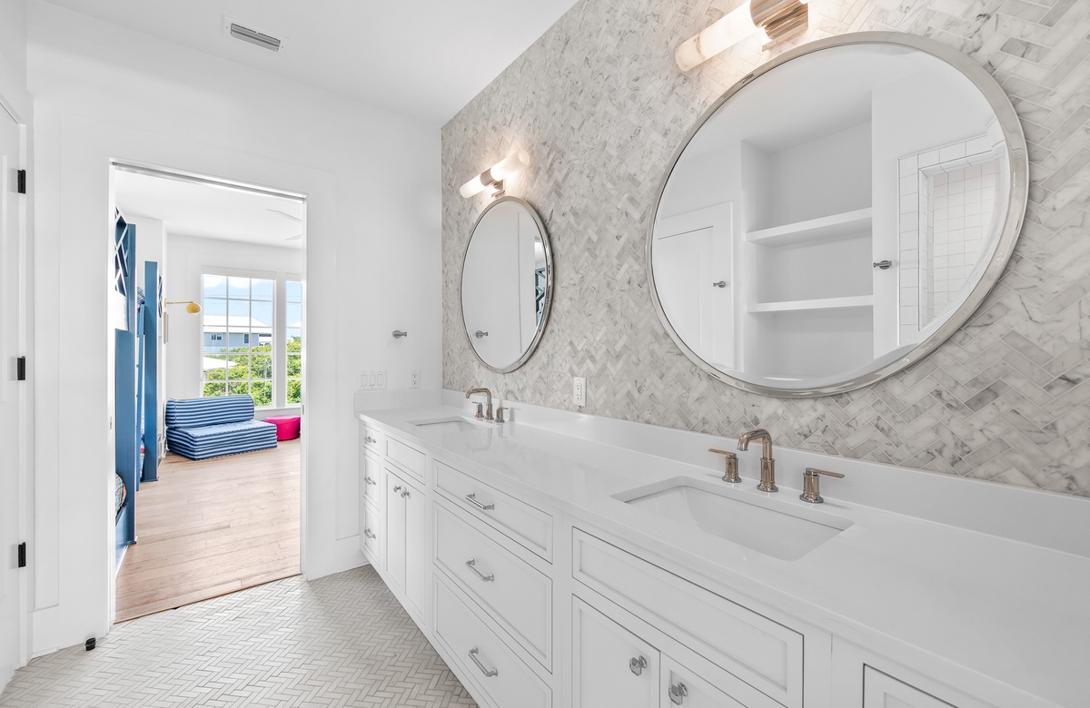 On 30A in Inlet Beach, Florida, "Getaway on Green" combines fun for the whole family with luxurious accents and conveniences, comfortably sleeping 26 guests in 9 bedrooms and 7 bathrooms. Enjoy the serene quietness this property offers with a short walk to world-famous 30A beach towns or private white sandy beaches. This is a brand-new beach house that is ready to spoil guests!