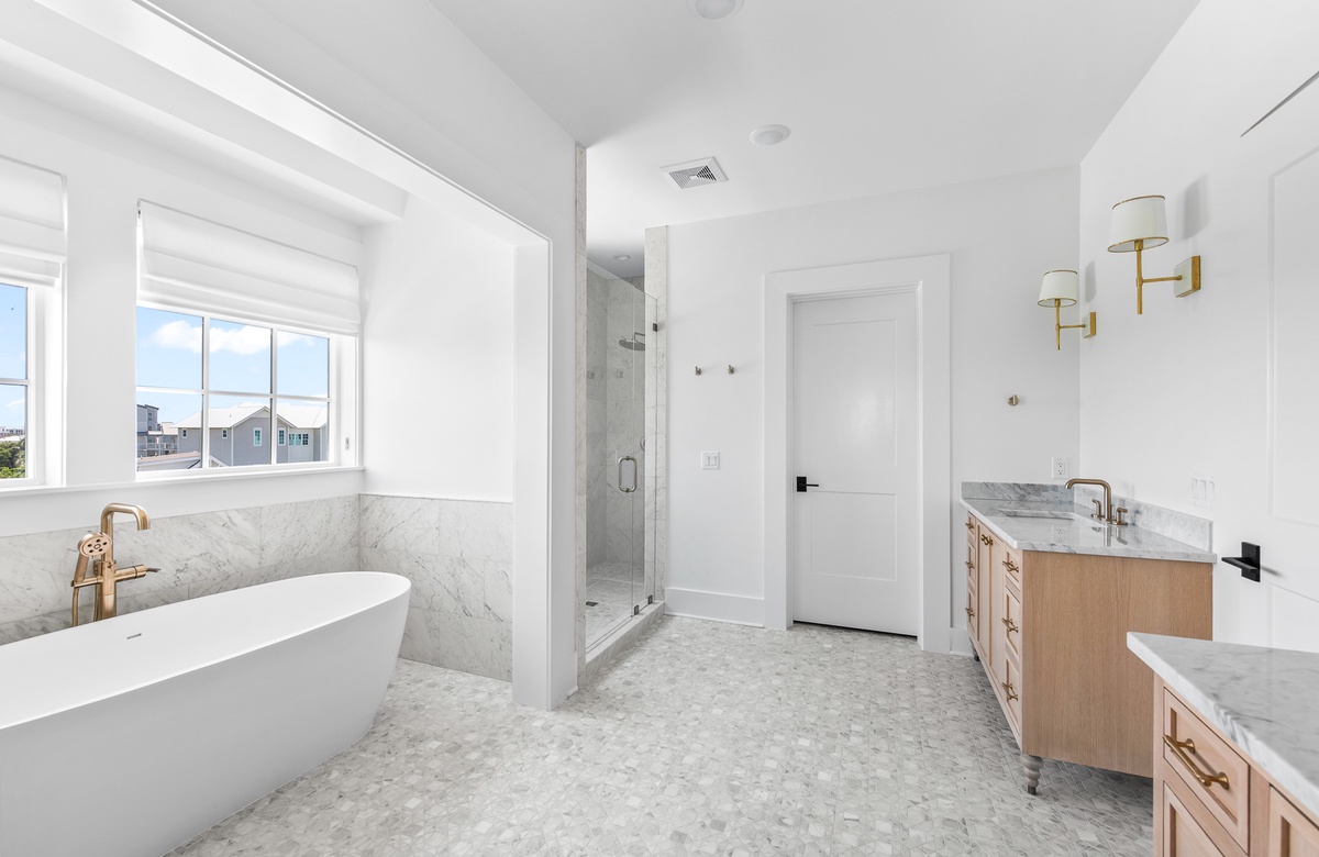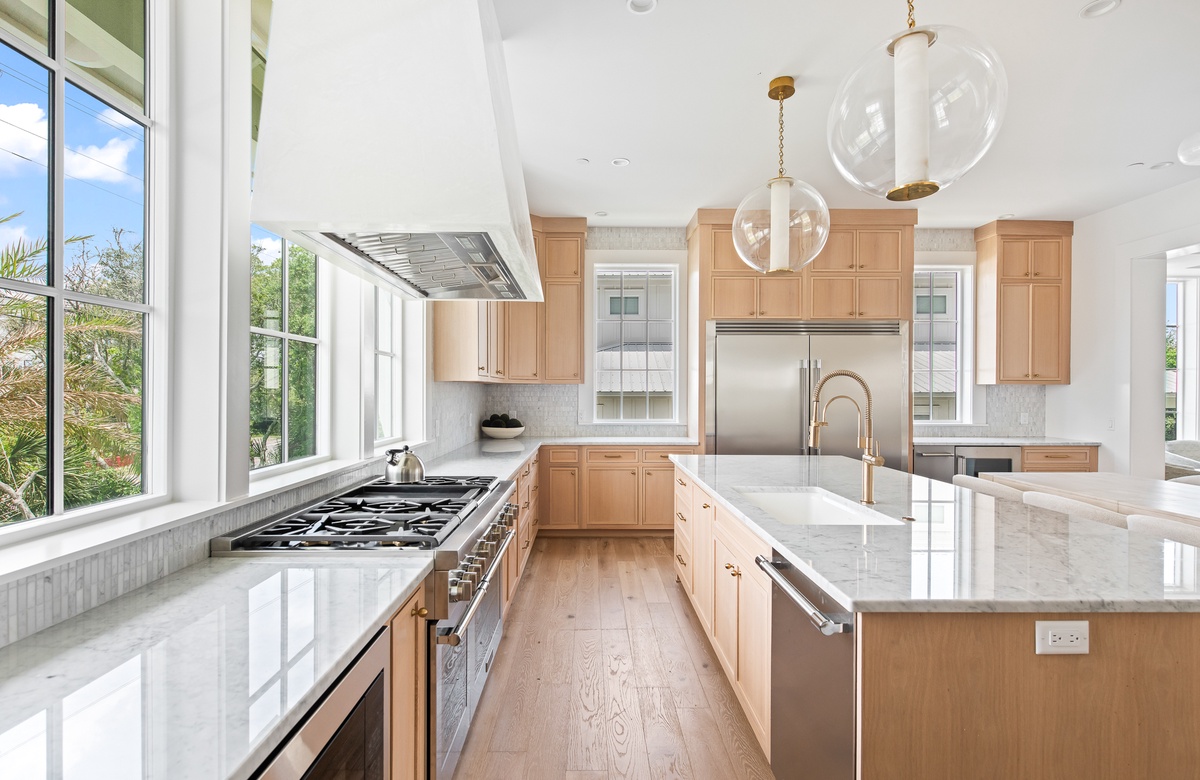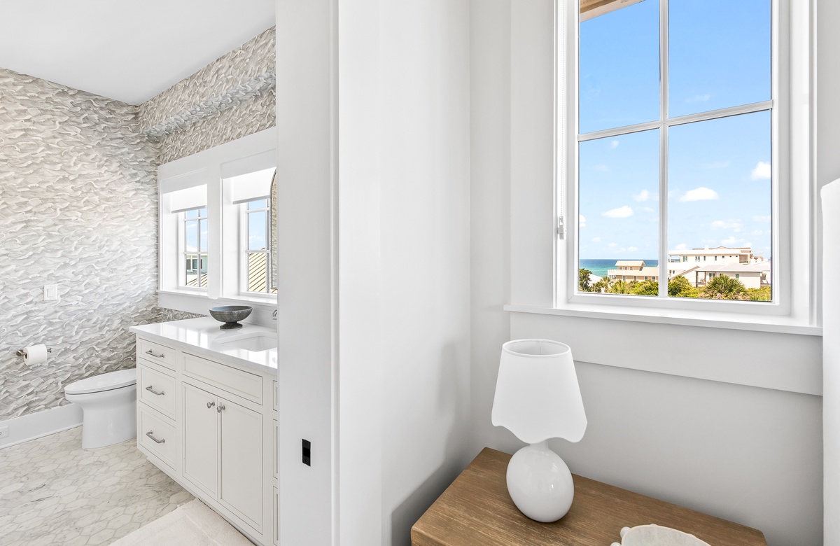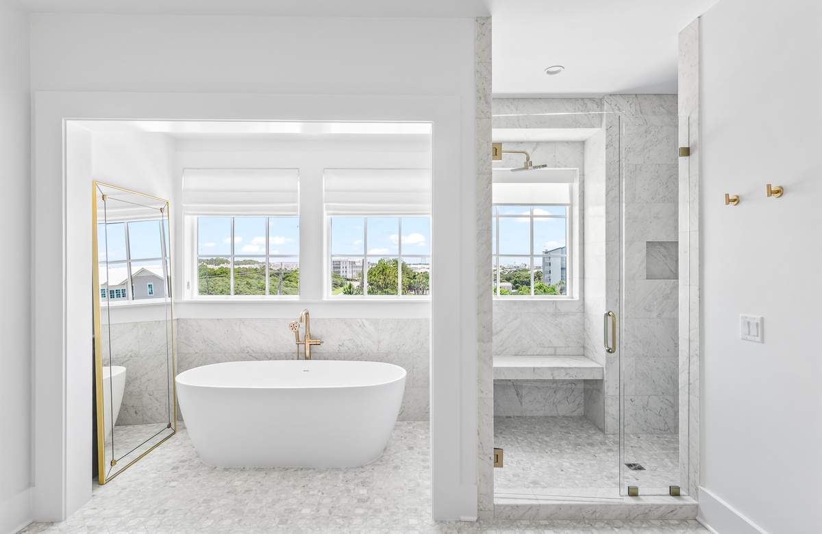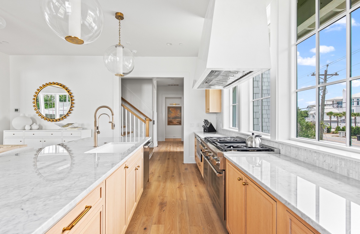 On 30A in Inlet Beach, Florida, "Getaway on Green" combines fun for the whole family with luxurious accents and conveniences, comfortably sleeping 26 guests in 9 bedrooms and 7 bathrooms. Enjoy the serene quietness this property offers with a short walk to world-famous 30A beach towns or private white sandy beaches. This is a brand-new beach house that is ready to spoil guests!