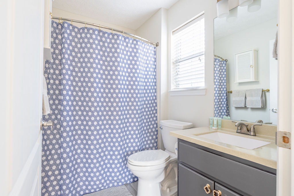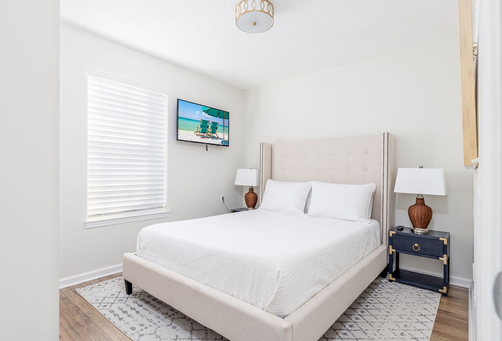 - Guest bedroom one, shared bathroom, Queen bed (sleeps 2)