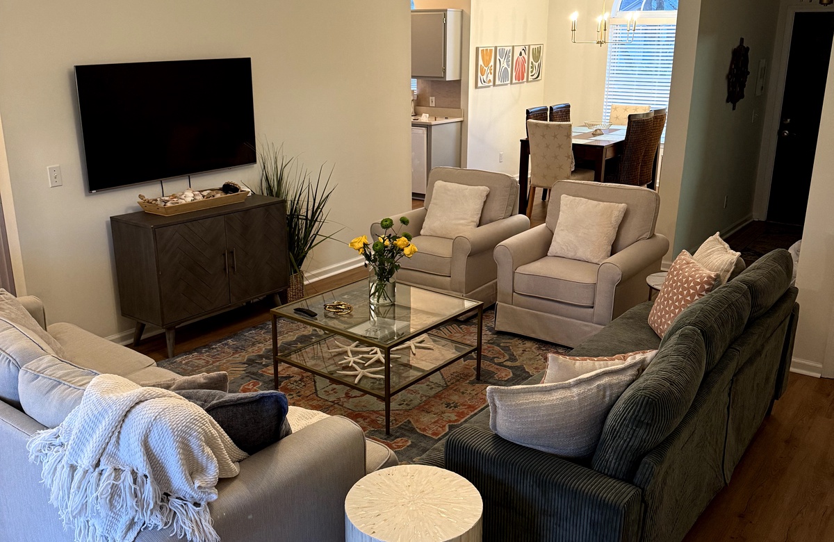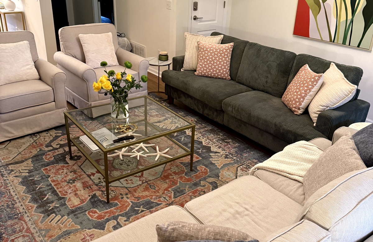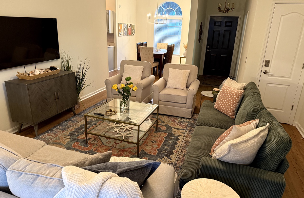 ~ Please do not re-arrange the furniture. This could result in damages and additional charges.