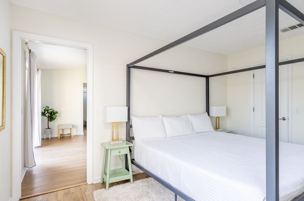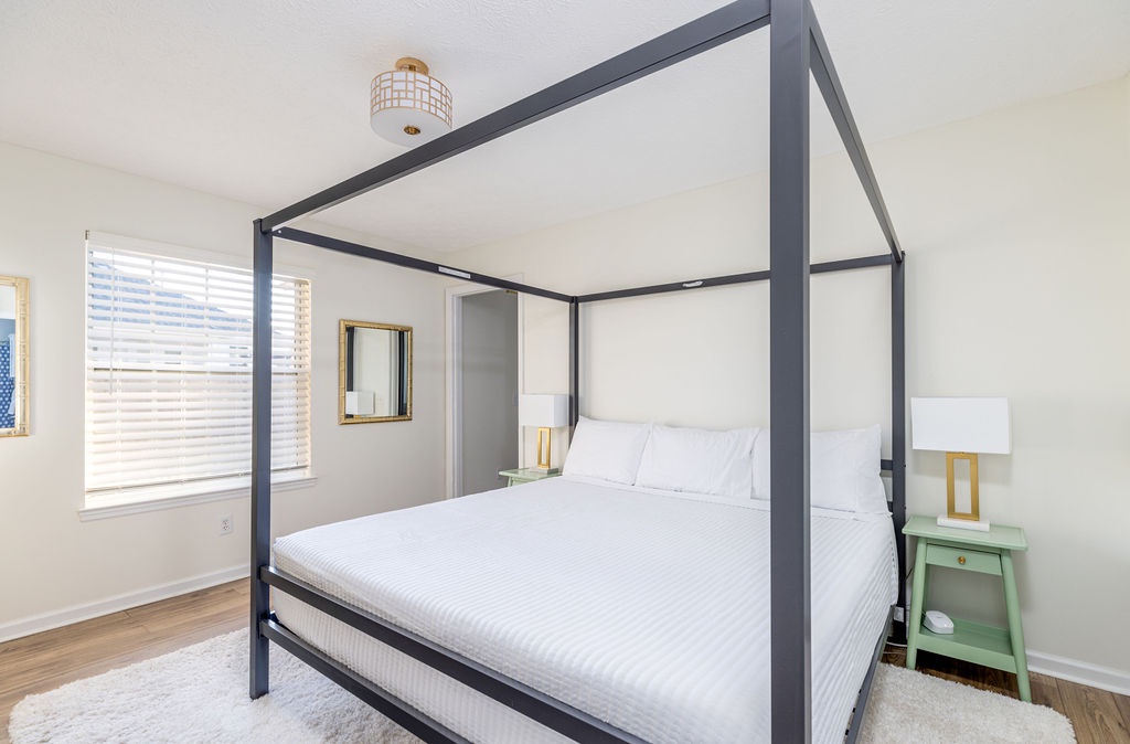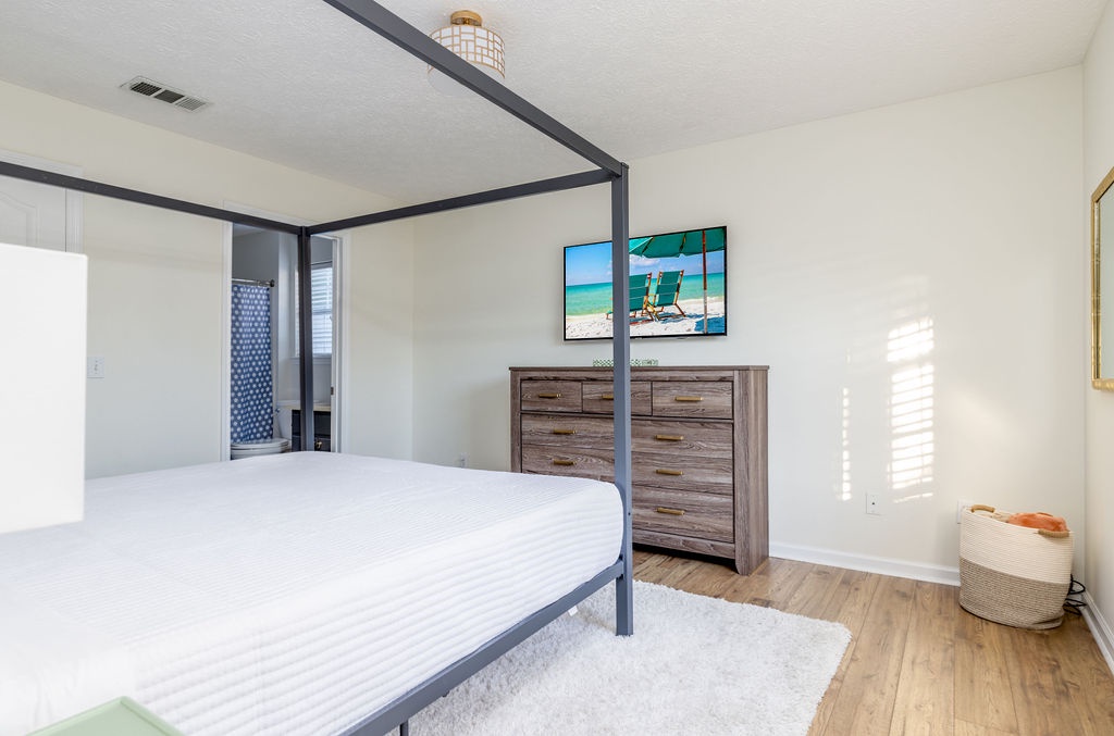 - Master bedroom with private bathroom, King bed (sleeps 2)