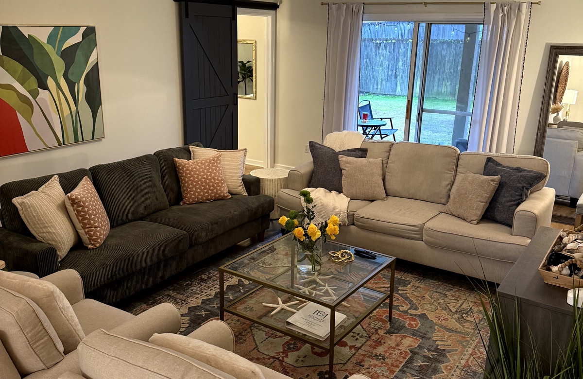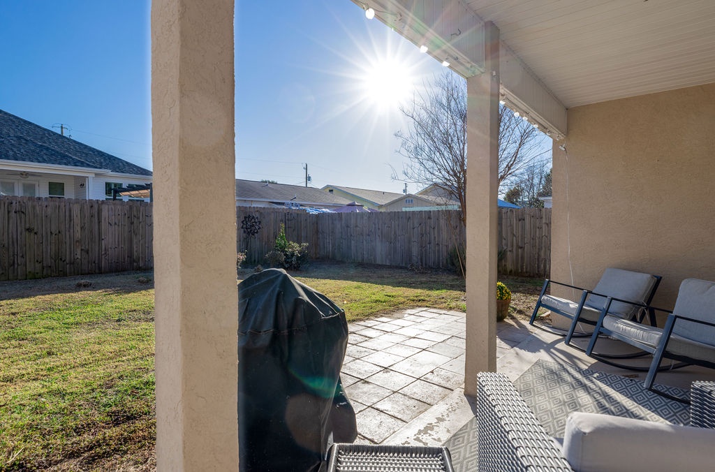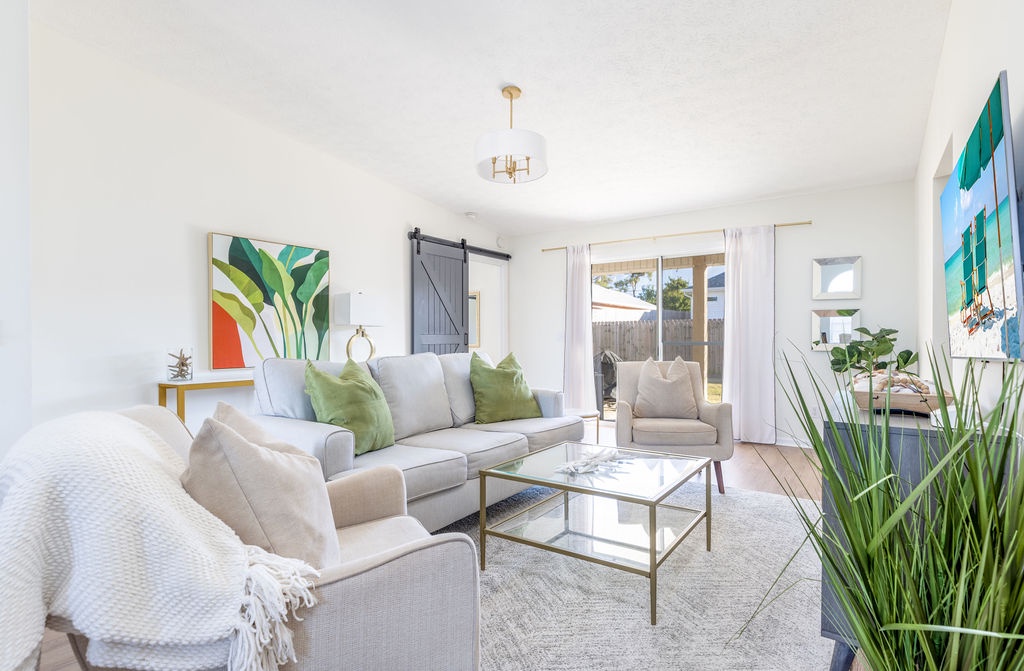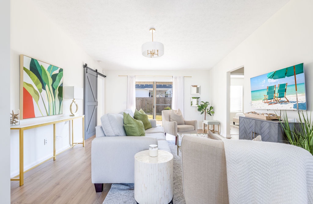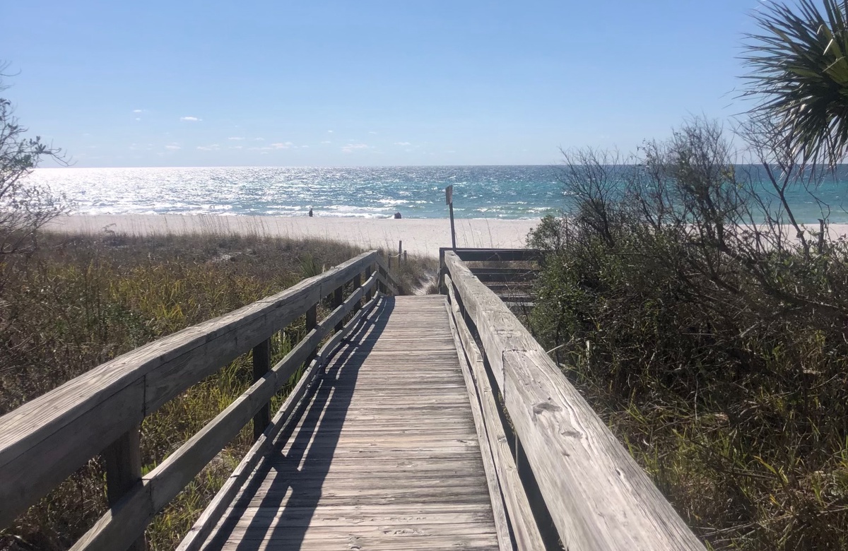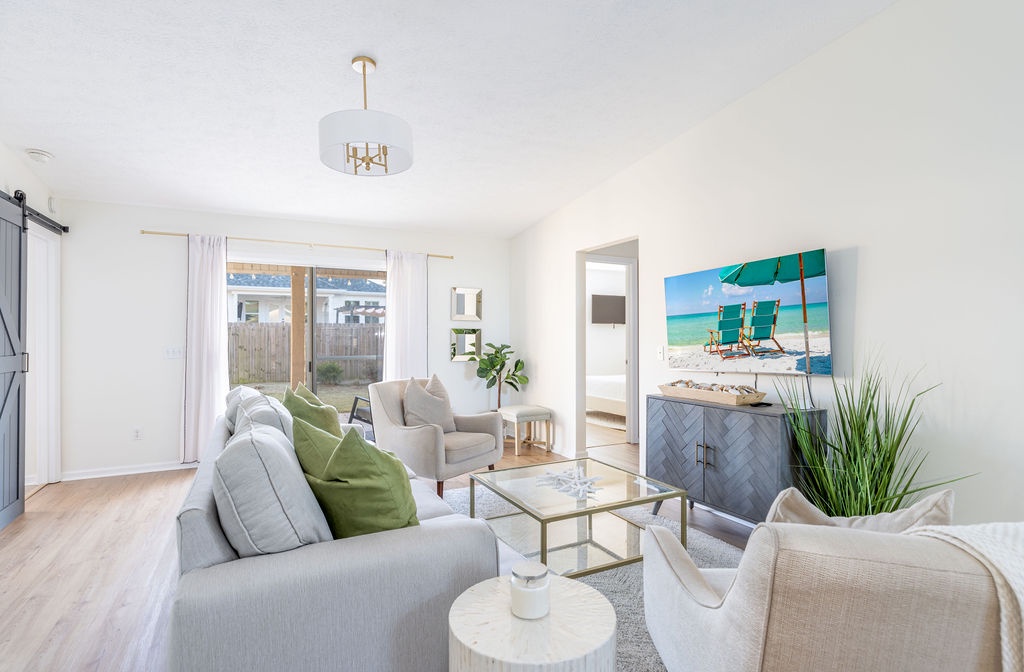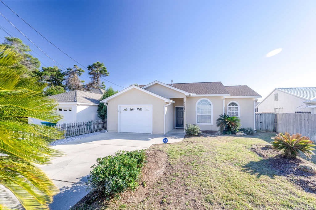 Relax with family or friends at this peaceful single-level beach home! The three-bedroom home sleeps six comfortably, with the option for sleeping eight with the sleeper sofa in the living room. The master bedroom has a king-size bed and an en suite bath with a shower/tub combo. The two guest rooms, one with a queen-sized bed and the other with two twin beds, share a hall bath. Enjoy the fenced-in backyard's privacy after a long beach day. The beach is just a short walk from the home. Rosemary Beach/30A is only a seven-minute drive from the home! There are many dining options just a short distance away for you to enjoy with family and friends!