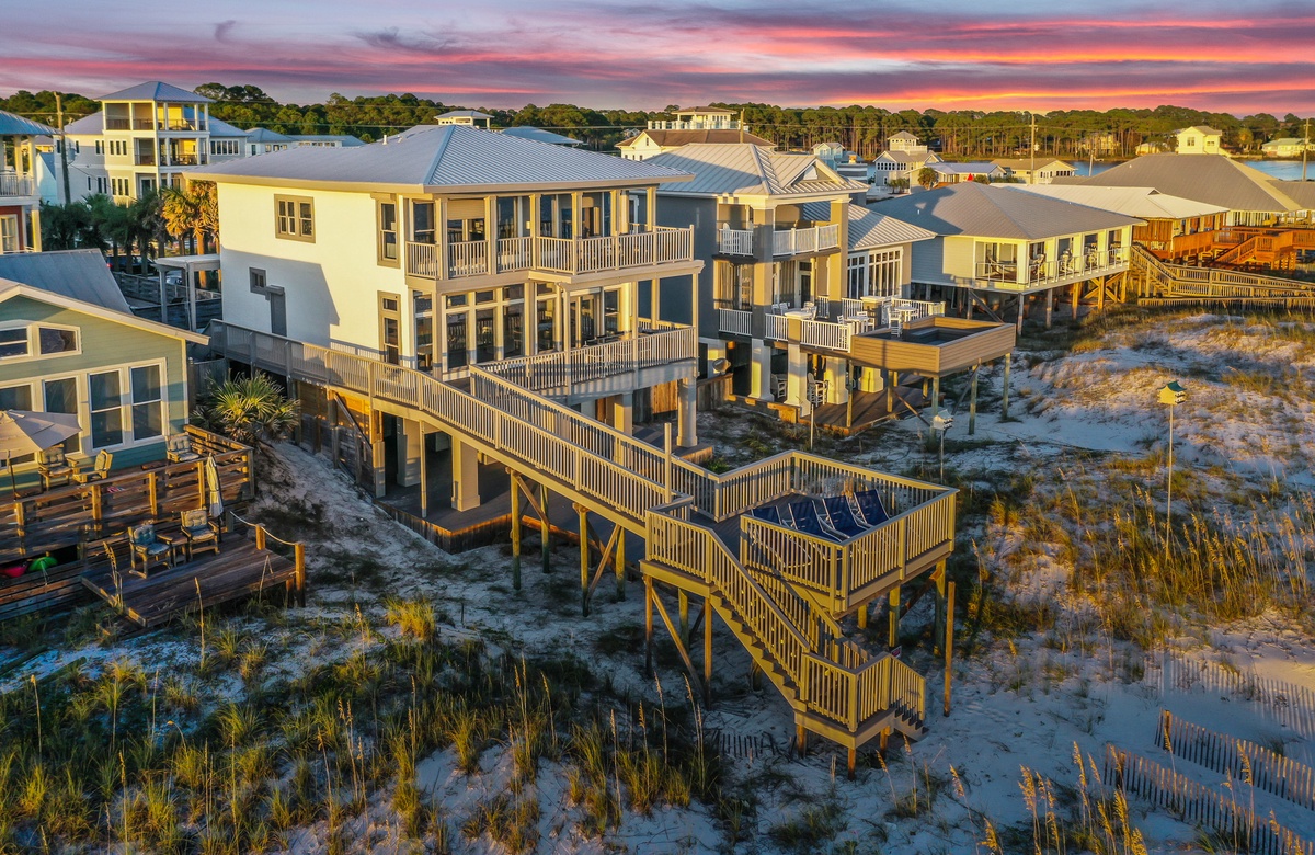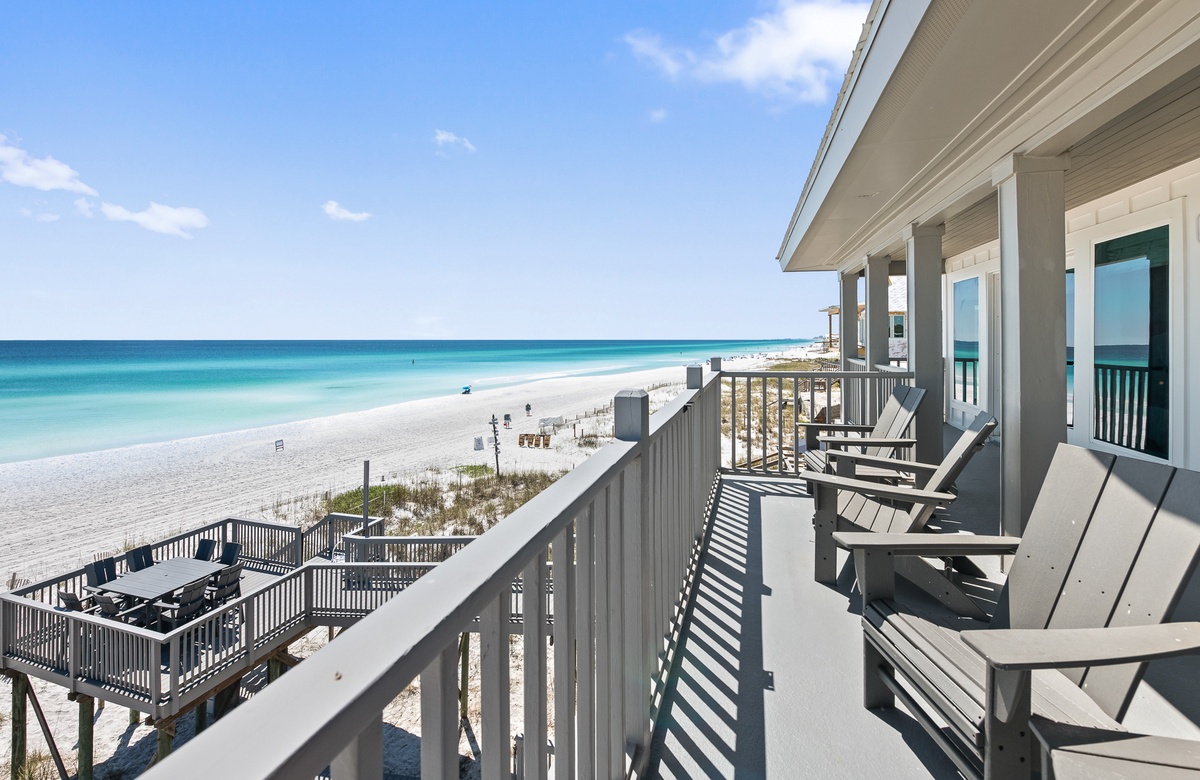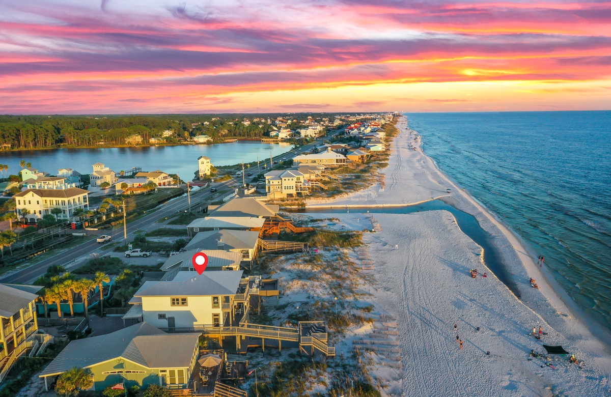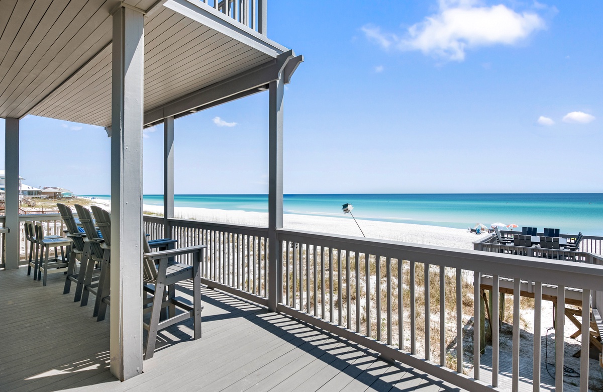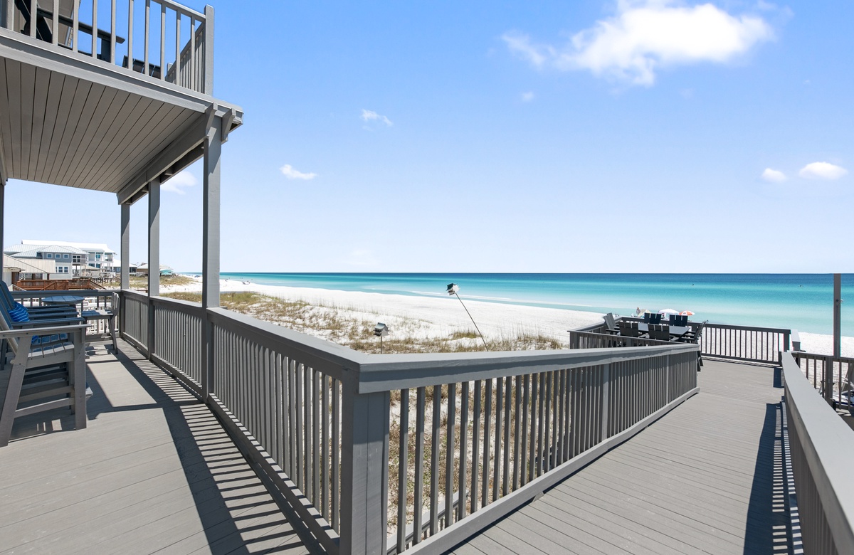 Sandwiched between the beach and an exotic dune lake, “Pines to Palms” captures the unique beauty of coastal 30A with charming hospitality. This beachfront home comfortably sleeps 10 guests in 5 bedrooms and 4 bathrooms with incredible views of the Gulf of Mexico and a private sun deck built right on the beach. Experience 30A like never before and book “Pines to Palms” today!