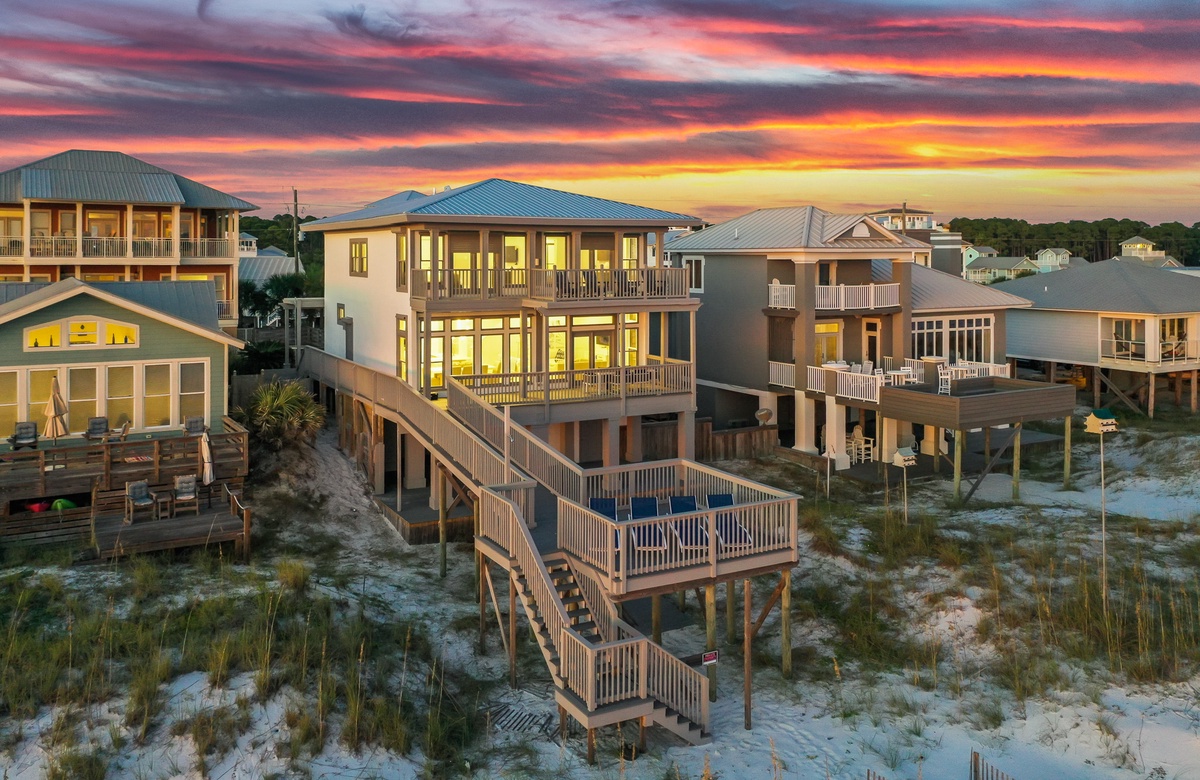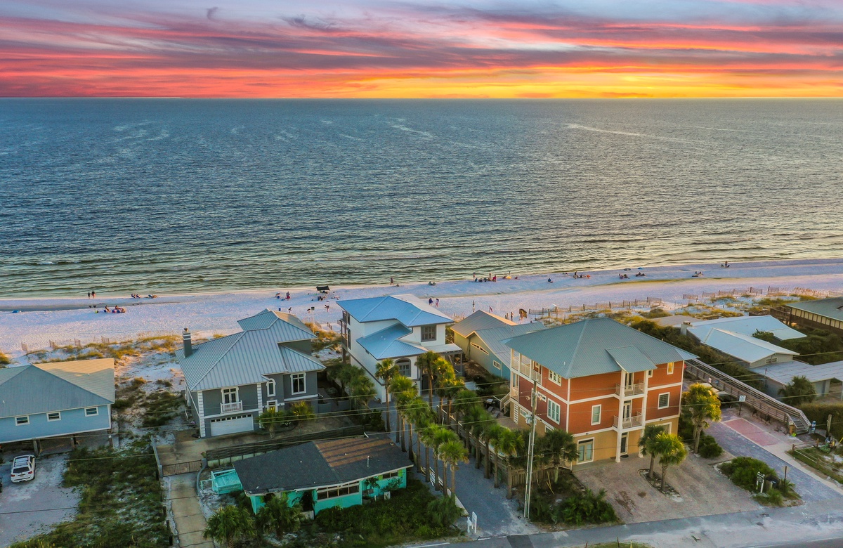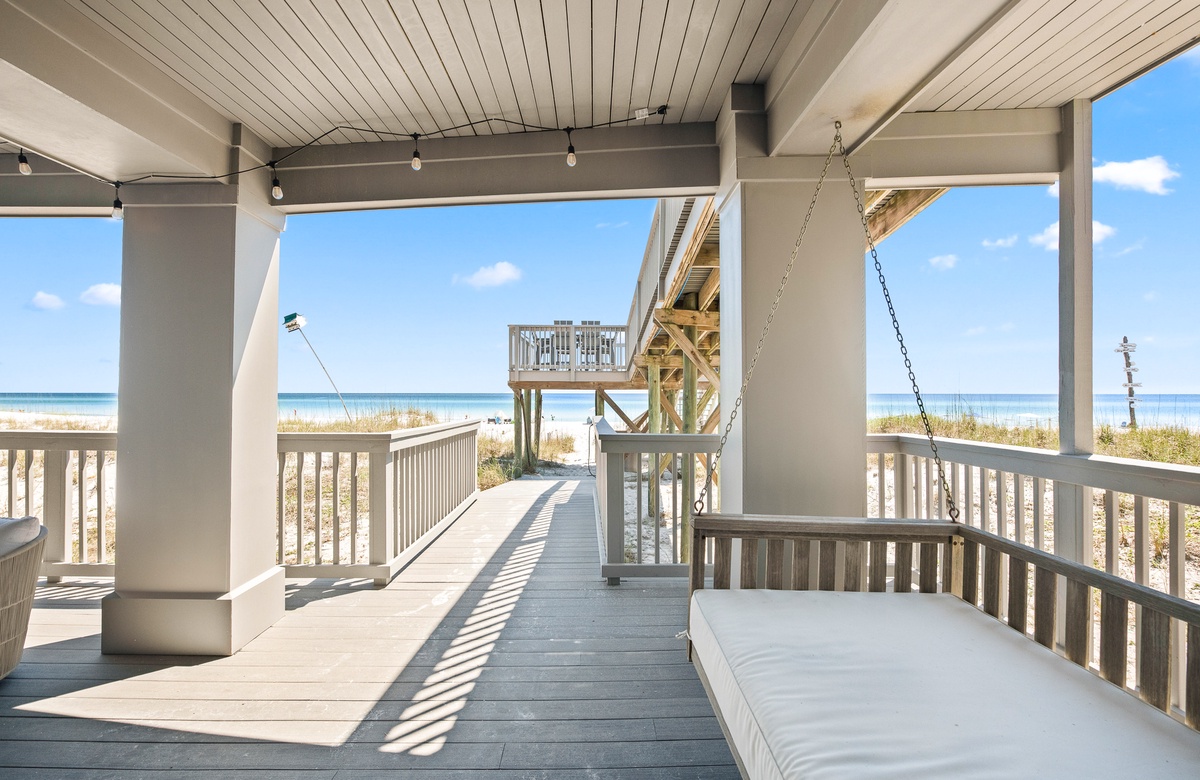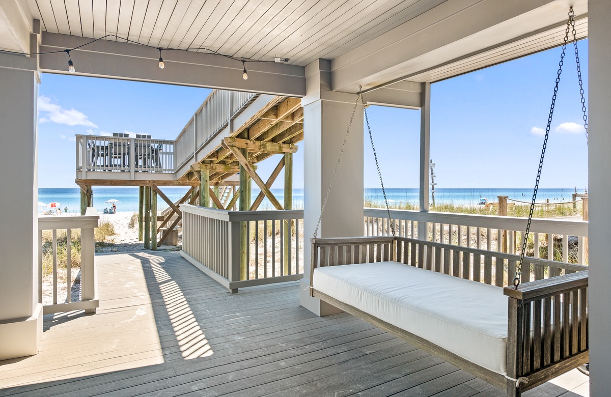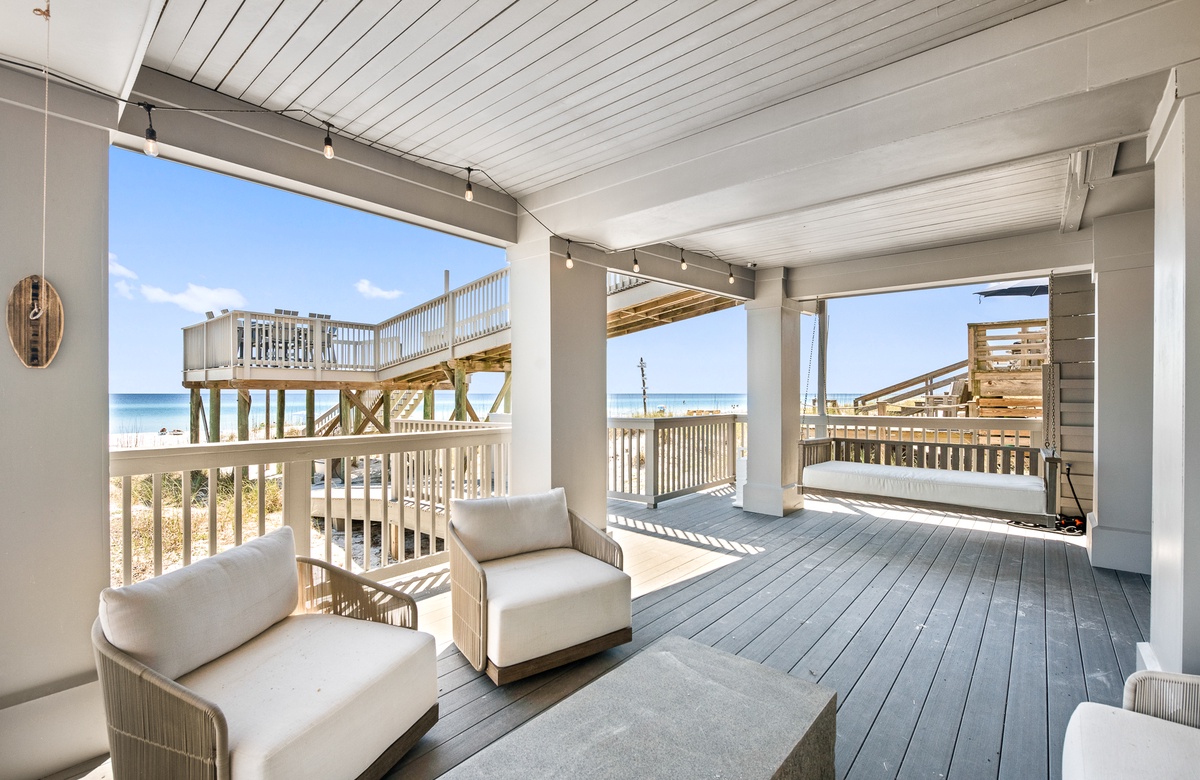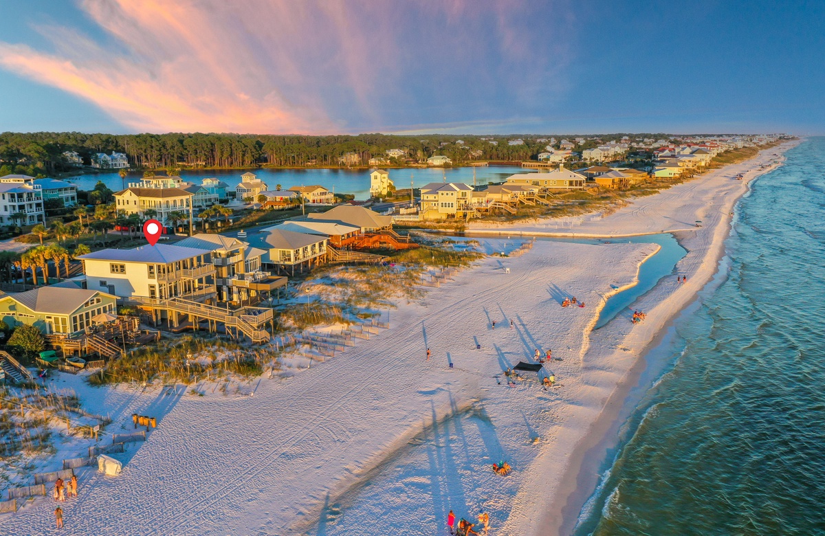 Sandwiched between the beach and an exotic dune lake, “Pines to Palms” captures the unique beauty of coastal 30A with charming hospitality. This beachfront home comfortably sleeps 10 guests in 5 bedrooms and 4 bathrooms with incredible views of the Gulf of Mexico and a private sun deck built right on the beach. Experience 30A like never before and book “Pines to Palms” today!