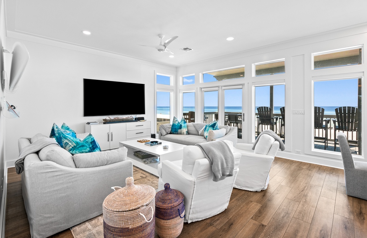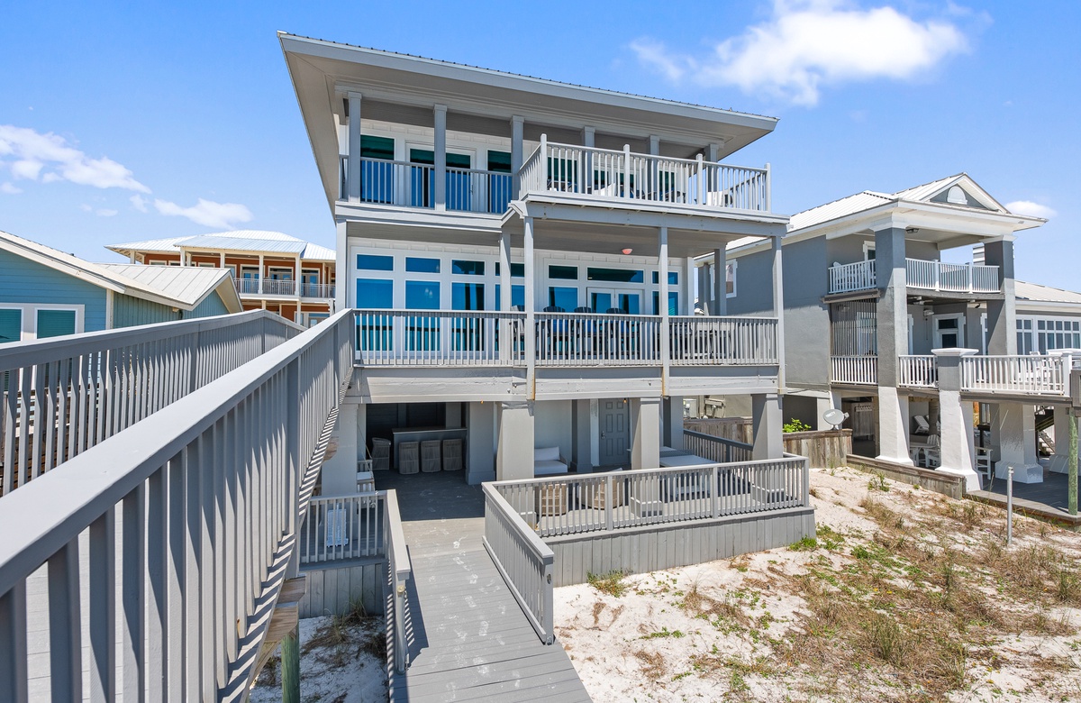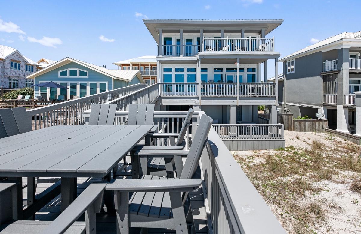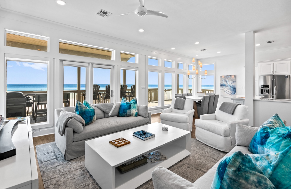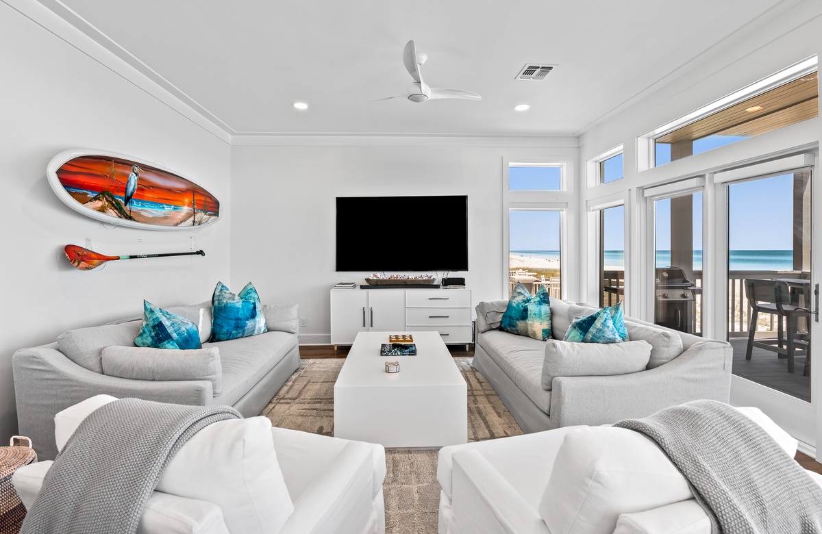 Sandwiched between the beach and an exotic dune lake, “Pines to Palms” captures the unique beauty of coastal 30A with charming hospitality. This beachfront home comfortably sleeps 10 guests in 5 bedrooms and 4 bathrooms with incredible views of the Gulf of Mexico and a private sun deck built right on the beach. Experience 30A like never before and book “Pines to Palms” today!