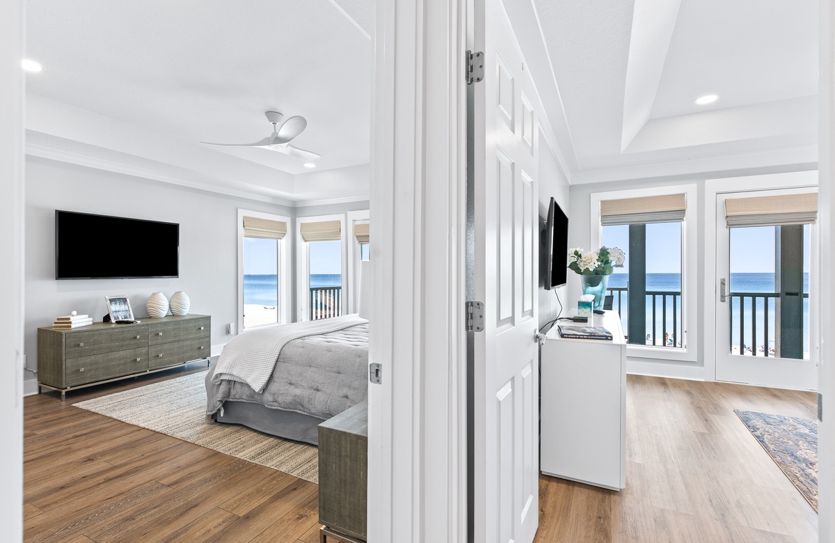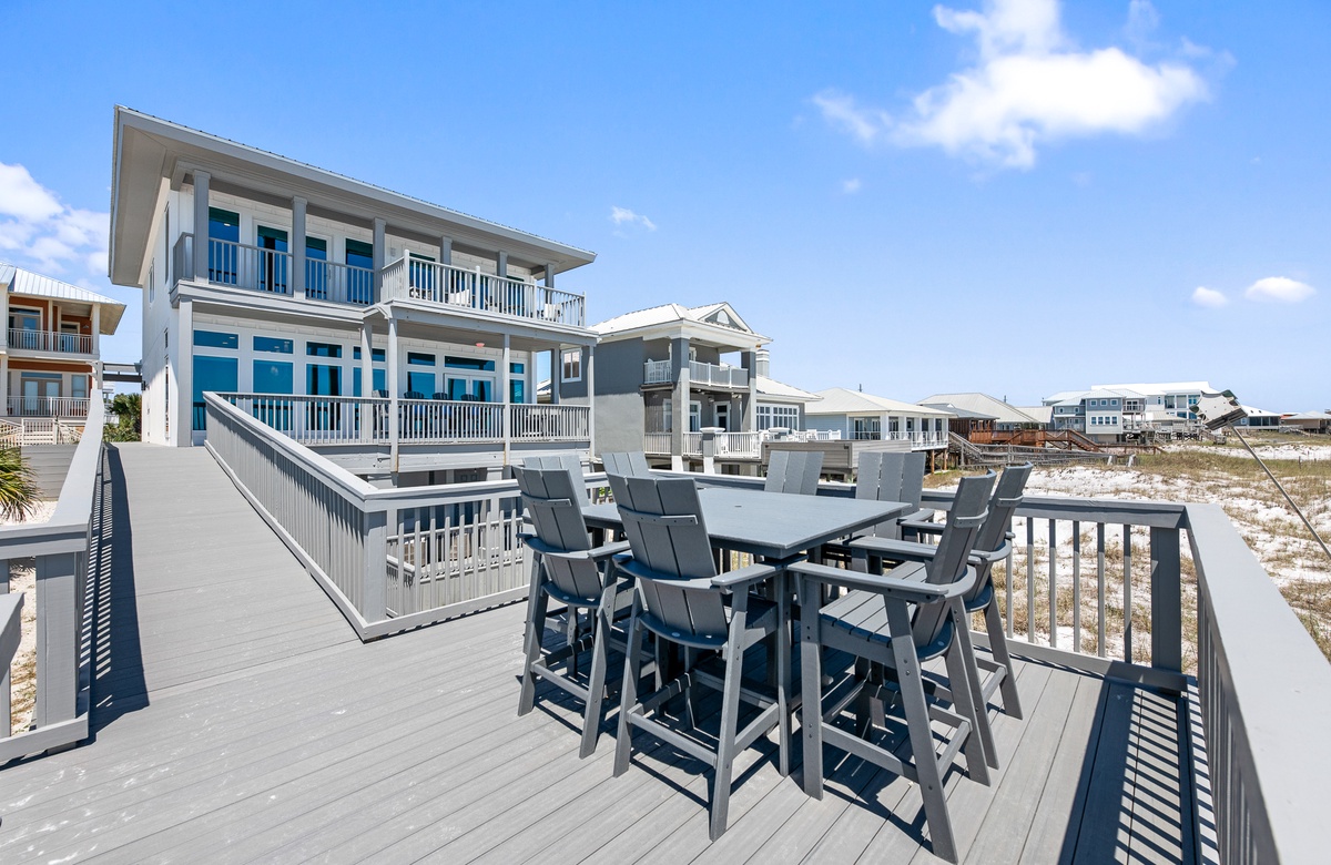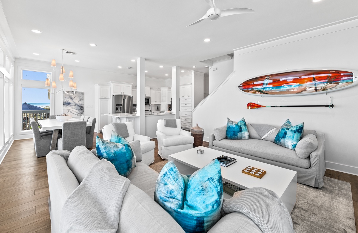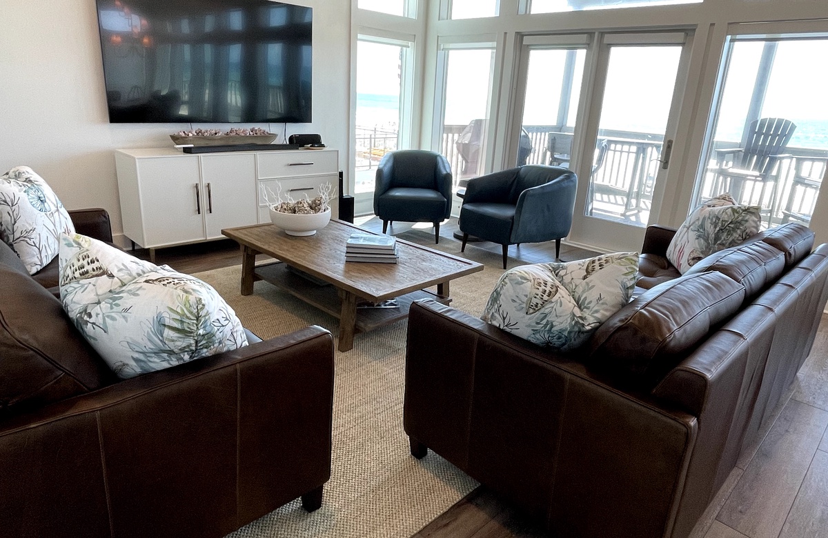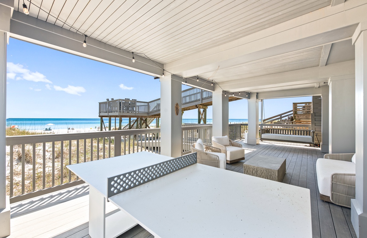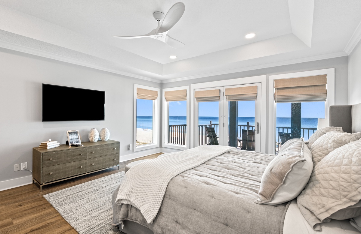 Sandwiched between the beach and an exotic dune lake, “Pines to Palms” captures the unique beauty of coastal 30A with charming hospitality. This beachfront home comfortably sleeps 10 guests in 5 bedrooms and 4 bathrooms with incredible views of the Gulf of Mexico and a private sun deck built right on the beach. Experience 30A like never before and book “Pines to Palms” today!