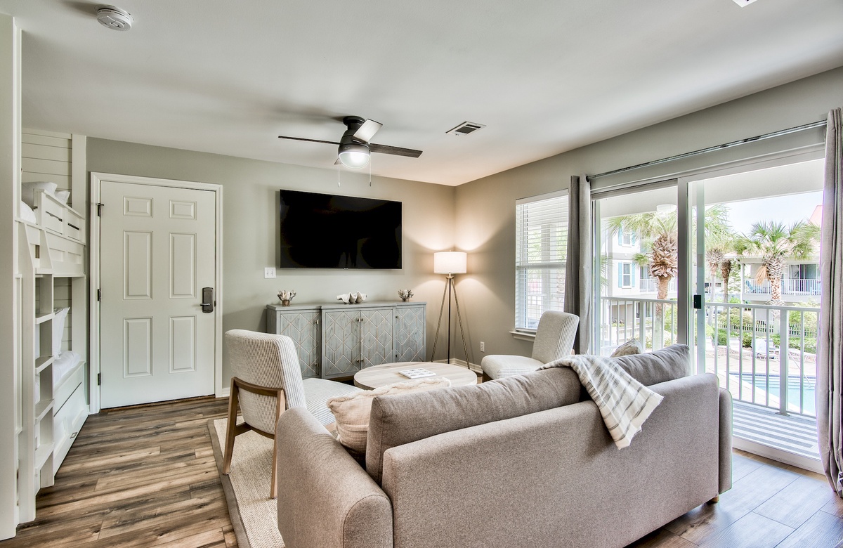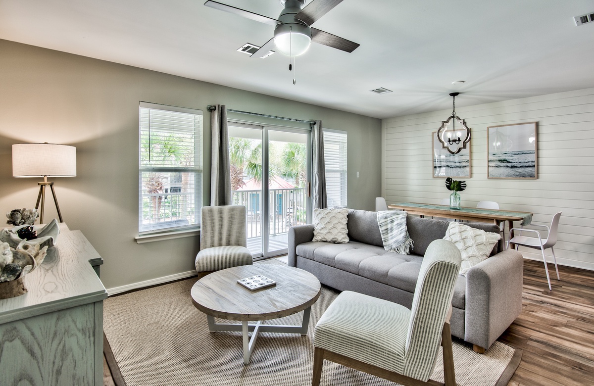 We enjoyed our stay here. We have small children and the space was comfortable. It's a short walk to the beach and really short with a golf cart (I would recommend). The community pool was nice and hardly no one ever in it. The beach is super busy and traffic on July 4th week was the only negative. The space was very clean and decor was nice. Would stay again. They have a couple of beach chairs, sand toys, floats, etc on the balcony. We left a few things as well for the next guest!- Phil W , Posted: 7/9/2024