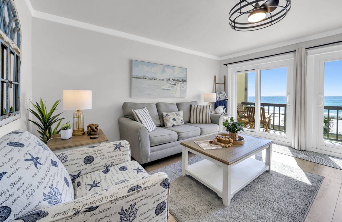 Surrounded by sandy white beaches, emerald gulf water and rare, iconic coastal dune lakes, “Sull’acqua” by Bespoke Management dazzles guest expectations with beach or lake views from every room of this beachfront condo at the Carillon Beach Resort in Panama City Beach less than 10 minutes from Florida’s famous Scenic Highway 30A.