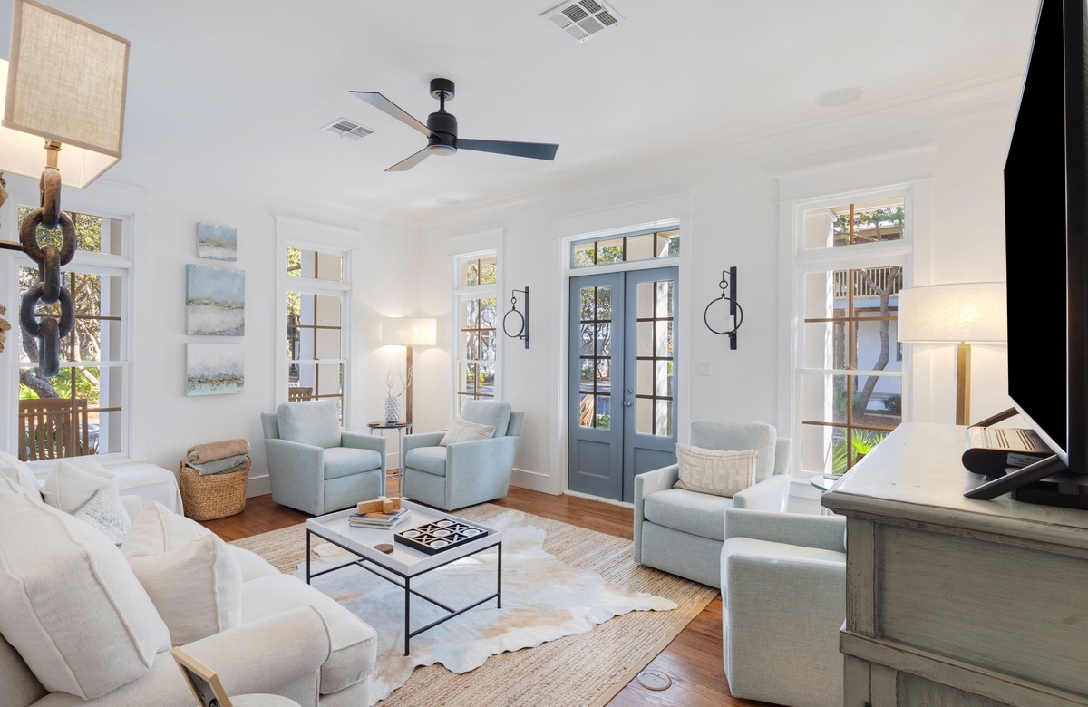 Creating the means to disconnect and cherish intentional family time is highly encouraged in this home. The outdoor dining courtyard is a perfect escape from the hustle of Rosemary Beach while offering a beautiful natural experience engulfed by plants and trees. If you are looking to rest and wind down, The Beach House offers lavish space for each member of the family to have some “you” time. Whether that time is spent tucked away with a book and a cup of coffee in one of the charming outdoor seating spaces, in a cozy bed, or in one of the living rooms, you are sure to find much-deserved rest. The homeowners intentionally furnished each room and living space with comfortable and clean pieces to make guests feel welcomed, cared for, and, most importantly, at home. The superb location of The Beach House allows you and your guests to always be within walking distance of nearly every need that may arise. If you are looking for a pool or a beach, a restaurant or a shop, a social gathering, or an intimate moment, the location of this home offers them all. The only difficulty with this home is deciding what you are going to do first!